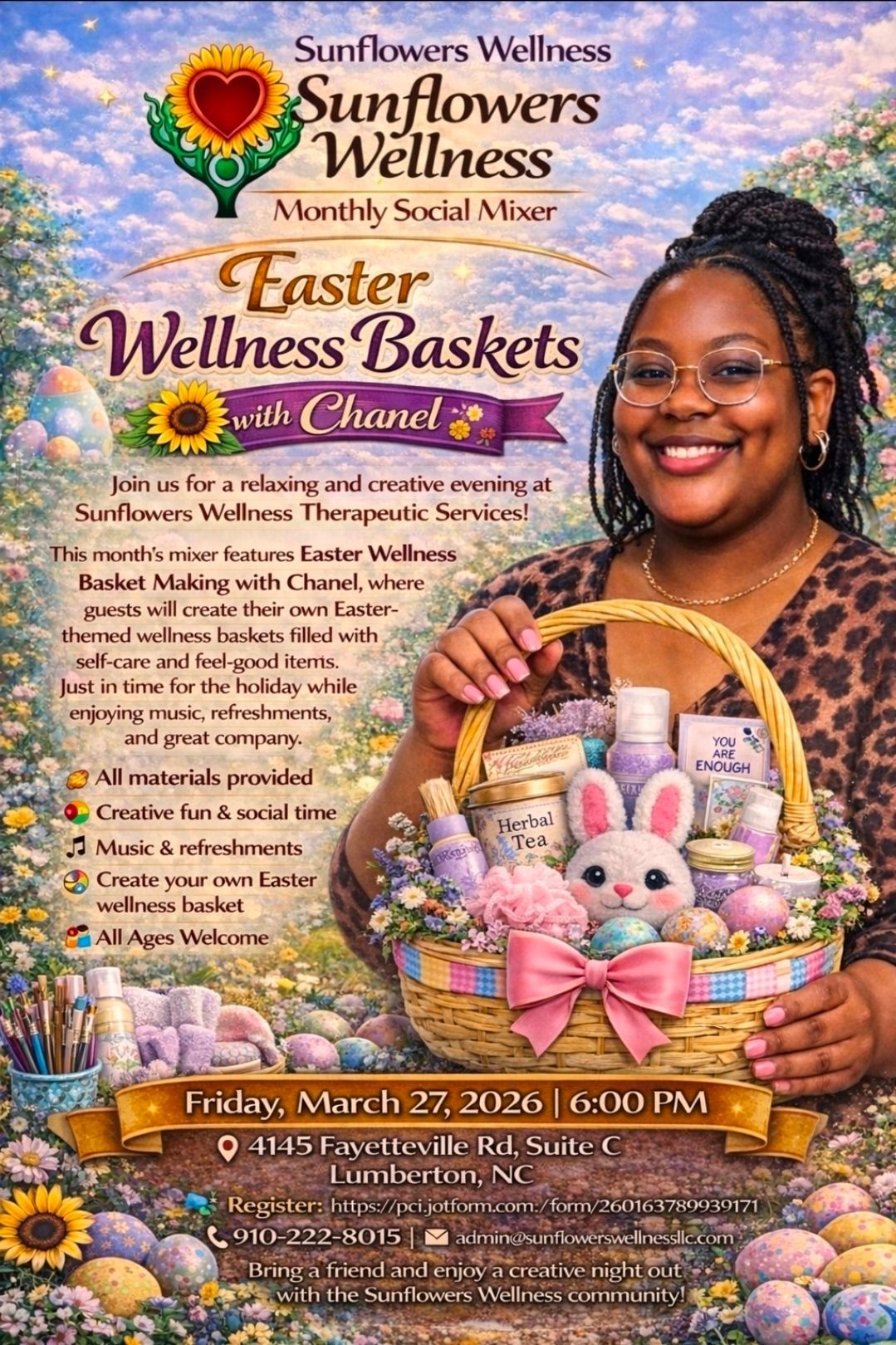 Let us know you’re coming by emailing admin@sunflowerswellnessllc.com or calling 9102228015. Hope to see you there!
